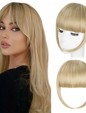 Clip in ofina, sponka do vlasů s přírodní umělou ofinou, světle blond mix odbarvených blond francouzská ofina s ofinou a spánky, příčesky pro ženy, prodlužování vlasů s ofinou pro každodenní nošení