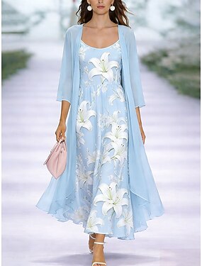 Dámské Maxi šaty Sada šatů Áčkové šaty prázdniny Cikánský Plážový styl Běžný Květinový Grafika 3/4 délka rukávu Do V Vodní modrá Světlá růžová Trávová zelená Béžová Léto Jaro Podzim Zima