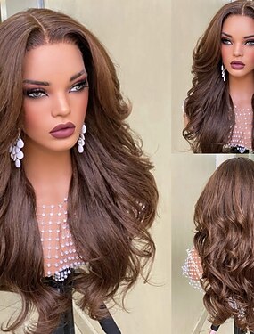 Přírodní vlasy 5x5 uzávěr 13x4 krajka vpředu Paruka Střední část Brazilské vlasy Vlnitá Kaštanová Paruka 130% 150% Hustota vlasů 100% Panna Bezlepkové Předtržený Pro Dámské Dlouhý Paruky z přírodních
