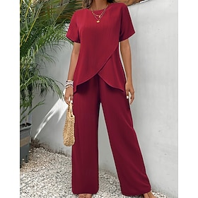 Dámské Tričko Sady kalhot Bolero Top Krátký rukáv Tričkový Kulatý Pevná barva Módní Šik ven Denní Venkovní Dovolená Rubínově červená Námořnická modř Trávová zelená Léto Běžný Volný ... > Více -