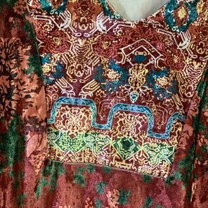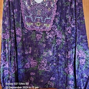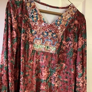 This is a gorgeous top!  Its soft and velvety and is a great boho shirt!  I love the unique style and recommend it highly! I love the sleeve too.