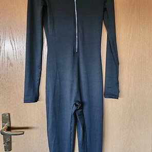 wie in der Ausführung beschrieben. Tolles gutes glänzendes Material und sehr angenehm auf der Haut. Sieht sehr edel und schick aus. Passform war perfekt. Habe EU 38 und habe small genommen, war perfekt. Sieht super schön aus angezogen. Das Foto vom Hersteller ist super richtig und entspricht genau dem Jumpsuit.