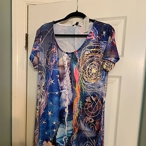 This is such a colorful and fun dress! I love the pattern, and it fits well.