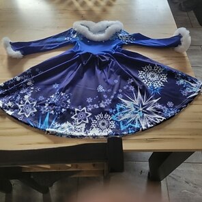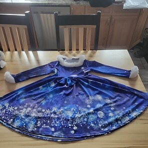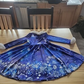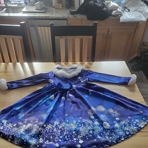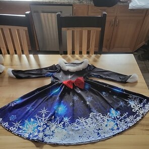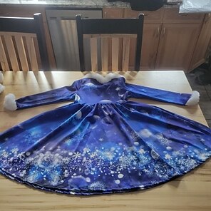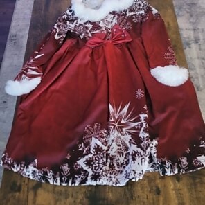 The dress is absolutely adorable. The material is awesome. It was very wrinkled when I first got it within about an hour. The wrinkles fell out and it looked perfect. I can’t wait to give it as a gift it’s for a little four year old and then I also got her the red boots that go with the dress, she will look so cute in both pieces I was. I was really surprised at how well-made the dress was. It has fur around it and it’s not cheap looking. I would highly recommend it. I don’t think you’ll be sorry at all I would read it a plus plus