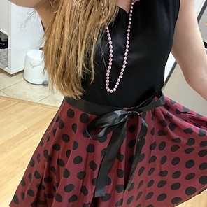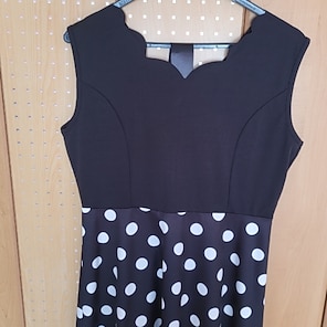 Pěkné šaty, líbí se mi barva, je větší než jsem čekala, měla jsem si vzít M, ale četla jsem, že lidé říkají, že je to malé, a moje nemá šití v oblasti prsou jako ostatní, které vidím na obrázcích zákazníků. Je to smutné, protože věřím, že by to vypadalo lépe na těle.