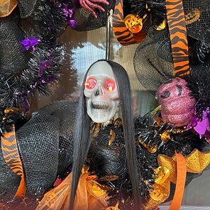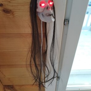 Hyvä halloweenkoriste. Toimiva. Silmät saa vilkkumaan tai olemaan pysähdyksissä. Hieno!