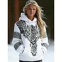 Dámské Mikina s kapucí s kapucí Slátanina Tisk Přední kapsa Grafika Zvíře Geometrický Vinobraní Na běžné nošení Cikánský Dlouhý rukáv Kapuce Běžné topy Ležérní ulice Na den Černobílá Černá Bílá Jaro |