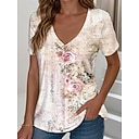 Dámské Tričko Tisk Květinový Grafika Rostliny Vinobraní stylové Klasické Krátký rukáv Do V Běžné topy Denní Žlutá Světlá růžová Trávová zelená Léto Jaro |