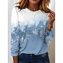 Dámská mikina zima sněhová vločka tisk modrý gradient casual pohodlný pulover běžný střih prázdninové období útulný top předpodzim |