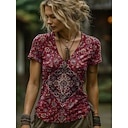 Dámská boho tričko květinová grafika paisley bohemia vintage stylové krátké rukávy V-výstřih pravidelný střih každodenní vycházkový víkend tisk černé červené modré oranžové šedé léto jaro |