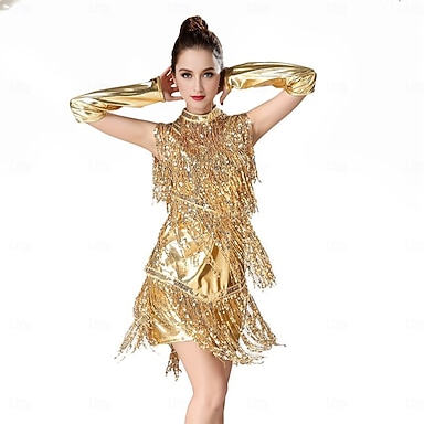 Latinské tance Šaty Štras Třásně Dámské Výkon Trénink Dlouhý rukáv Vysoký Spandex Tyl