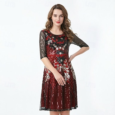 Řvoucí 20s 20. léta 20. století Ke kolenům Krátká délka Bubenové šaty Iluze Krátké rukávy Velký Gatsby Svatební host Flitry Flitry Do V Maškarní kostým Dámské Karneval Plesová maškaráda Večern