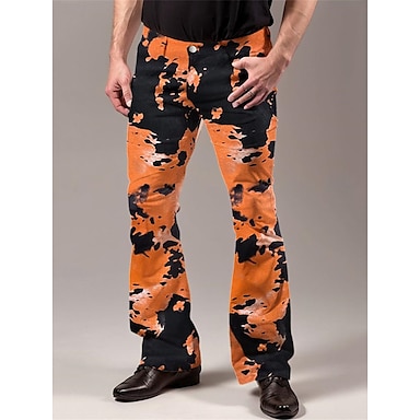 Retro 70. léta Báječný Kalhoty do zvonu Roztažené kalhoty Disko Mid Rise Psychedelické Maškarní kostým Pánské předvečer Všech svatých Karneval Dovolená hudební festival Festival Dospělé Kalhoty