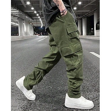 Pánské Kargo kalhoty Nákladní kalhoty Kalhoty Kapsy Straight-Leg Pevná barva Pohodlné Venkovní Plná délka Ležérní Denní Šik ven stylové Černá Armádní zelená Lehce elastické