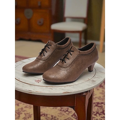 Dámské hnědé šněrovací oxfordské boty s nízkým blokovým podpatkem a detailem brogue, společenské boty ve vintage edwardiánském stylu z 50. let na cosplay, retro párty &denní módní outfity