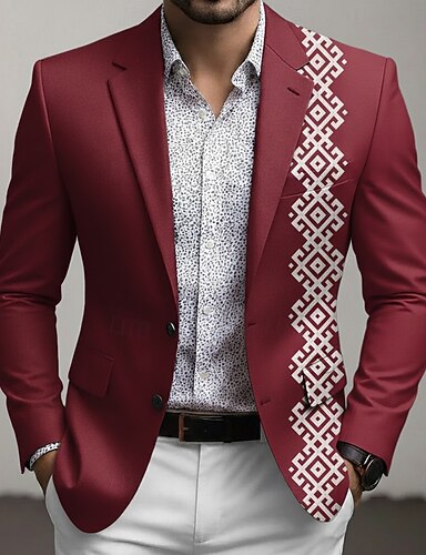 Pánské Grafika Sako Kabát Módní Pohodlné Prodyšné umělecké Na běžné nošení Ležérní Denní Párty večerní šaty 3D tisk Knoflíky Multi kapsa Jaro Podzim zima Otevřené Dlouhý rukáv Vodní modrá Rubínov