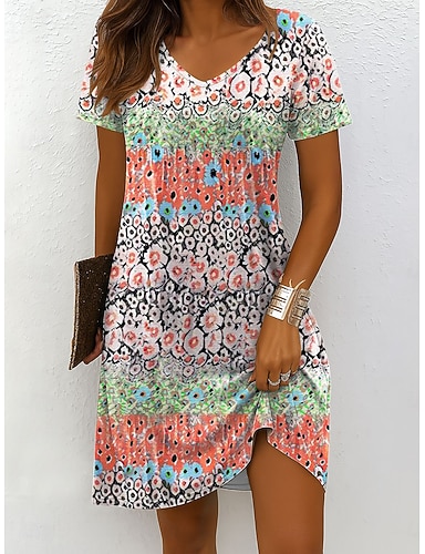 Dámské Mini šaty Letní šaty Volnočasové šaty Tričkové šaty Áčkové šaty prázdniny Na běžné nošení Cikánský Plážové Běžný Tónované Květinový Grafika Krátký rukáv Do V Bílá Žlutá Fialová Oranžová Léto