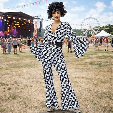 Sada Retro 70. léta Pásek Kombinéza Dlouhé rukávy Hippie Disko Geometrický Maškarní kostým Dámské předvečer Všech svatých Karneval hudební festival Retro tematická párty Dospělé Pásek Kombinéza Léto