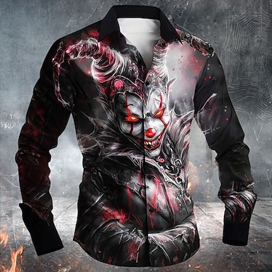 Pánské Klaun Krevní skvrny démon Košile Košile na knoflíky Dlouhý rukáv Temný punk gotický Venkovní Dovolená Léto Jaro Přehnutý 3D tisk košile s límečkem Černá