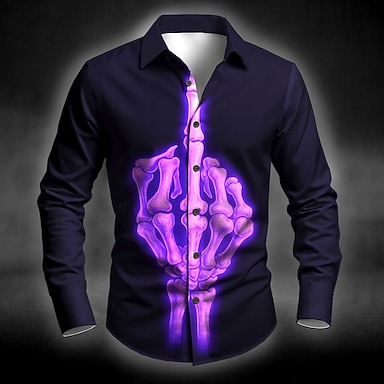 Pánské kostýmy tričko s kostrou prostřední prst košile na knoflíky dlouhý rukáv temný punkový gotický styl venkovní prázdninový letní jarní košile s límcem 3D tisk modrá fialová oranžová