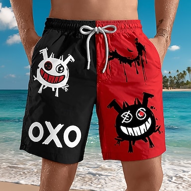 Pánské Komiks Smajlík Blokování barev Plavecké trenýrky Plavky a plavecké kraťasy Surfovací šortky Středně vysoký pas Retro Venkovní Streetwear Dovolená Boční kapsy Podšívka ze síťoviny Elastick