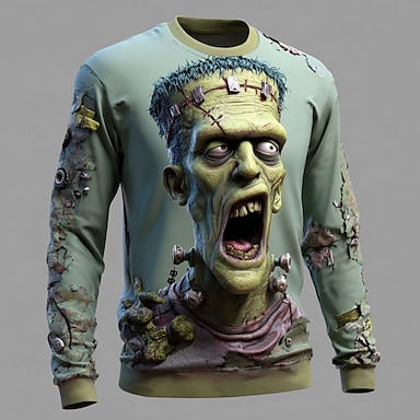 Pánské Zombie 3D Mikina Punk Večírek gotický Dlouhý rukáv Tričkový Dovolená Vodní modrá Hnědá Trávová zelená Výstřih ke krku 3D Celý rok Návrhář S M L XL XXL XXXL