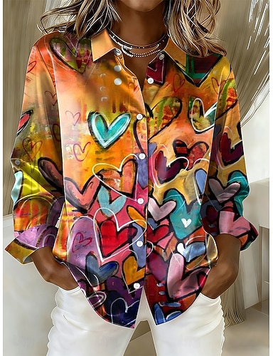 Dámské Košile Srdce Grafika Vinobraní stylové Moderní Dlouhý rukáv Košilový límec Běžné topy Denní Dovolená Vodní modrá Žlutá Fialová Trávová zelená Jaro Zima