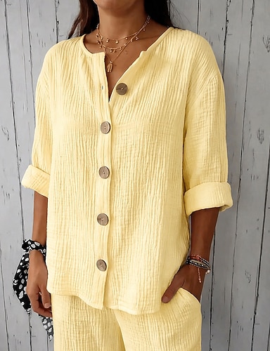 Dámské Košile Tlačítko nahoru Halenka Imitace bavlny a lnu Knoflíky Pevná barva Základní Na běžné nošení Dlouhý rukáv Košilový límec Běžné topy Denní Vodní modrá Bílá Světlá růžová Jaro Podzim