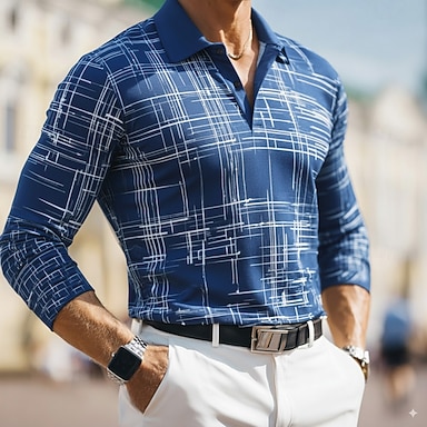 Pánské Pléd Waffle Polo košile Golfová košile Dlouhý rukáv Polo tričko Košile s límečkem Vinobraní Na běžné nošení Oblečení na dovolenou Formální oblečení Festivalové oblečení Knoflíky 3D tisk Jaro