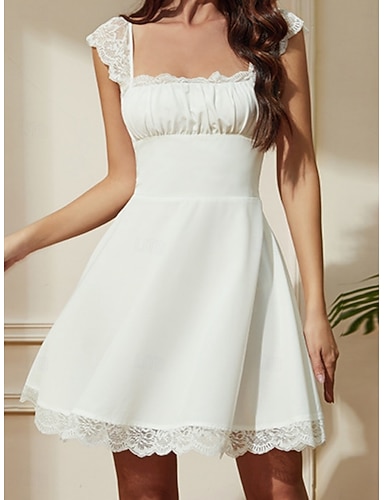 Dámské Mini šaty Krajkové šaty Bílé šaty Slip Dress Elegantní Módní Moderní Venkovní Dovolená Jdeme ven Běžný Bez vzoru Bez rukávů Hranatý Vodní modrá Černá Bílá Léto Jaro