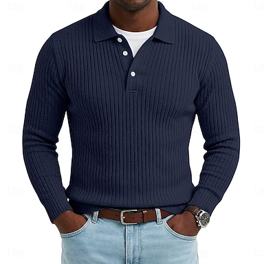 Pánské Top z žebrovaného úpletu S texturou Ležérní ulice Klopa Dlouhý rukáv Základní Moderní Bez vzoru Knoflíky Rýhovaný Jaro Podzim Celý rok Běžný Vodní modrá Bílá Námořnická modř Šedá Top z