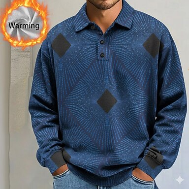 Pánské Geometrický Abstraktní Polokošile Termální košile Dlouhý rukáv Polo tričko Klopa Na běžné nošení Oblečení na atletiku Dovolená Denní nošení 3D tisk Podzim Zima Vodní modrá Bílá Šedá
