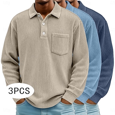 Pánské Kordurová košile S texturou Ležérní Sport Klopa Dlouhý rukáv Módní Základní Barevné bloky 3 ks Teplé Podzim Jaro & podzim Celý rok Běžný 1# 2# 3# 4# 5# 6# Kordurová košile