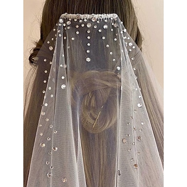 Jednovrstvý Moderní Stylový Svatební Závoj Loketní Závoje s Faux Perlovým Tylem