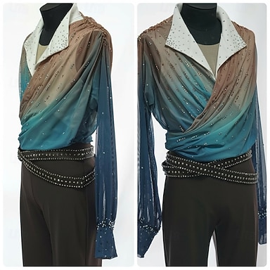šaty na latinskoamerické tance třásněný střapec štípaný kloub krystaly / kamínky dámské výkonnostní tréninky dlouhý rukáv chinlonová síťovina