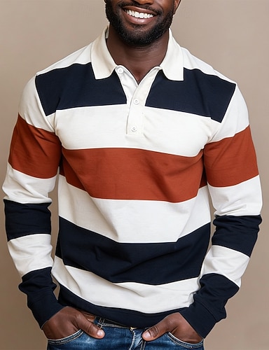 Pánské Proužky Rugby Polo Dlouhý rukáv Polo tričko Košile s límečkem Sportovní oblečení Na běžné nošení Venkovní Škola Oblečení na atletiku 3D tisk Jaro Podzim Vodní modrá Rubínově červená Trávov