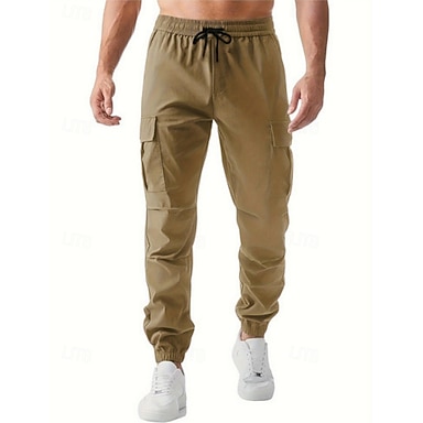 Pánské Nákladní kalhoty Kalhoty pro volný čas Padákové kalhoty Rychleschnoucí kalhoty Šňůrky Kapsy Bez vzoru Pohodlné Prodyšné Plná délka Domů Venkovní Streetwear prázdniny Jednoduchý Černá Khaki