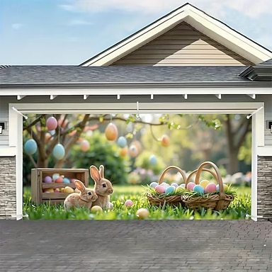 Velikonoce Kryt garážových vrat Velký závěsný Rabbit Vinobraní 3D Večírek Outdoor Střelecké pozadí Vchodové dveře Bytové dekorace