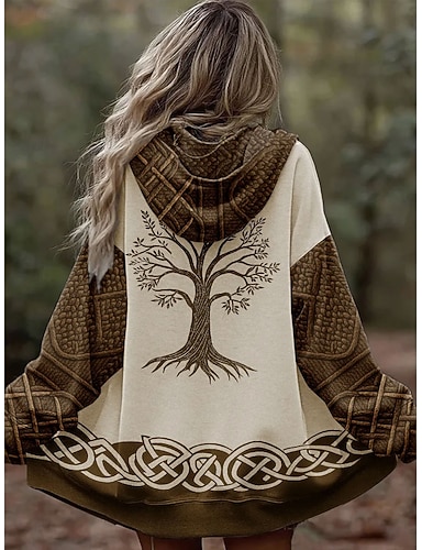 Dámské Mikiny na zip Grafika Geometrický Etno Punk Aktivní Vinobraní Dlouhý rukáv Kapuce Běžné topy Ležérní Domů Na den Vodní modrá Fialová Hnědá Trávová zelená Podzim Zima