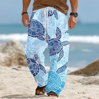 Pánské Želvy Mořští tvorové Kalhoty Kalhoty pro volný čas Volné kalhoty Středně vysoký pas Havajské Venkovní Dovolená Oblečení na pláž Elastická šňůrka v pase Kalhoty z lněného materiálu s kapsami