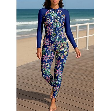 Dámské Ochrana proti vyrážce Celotělové plavky Potápěčská kombinéza Květiny Přední zip UPF50+ Rychleschnoucí Vysoká pružnost Dlouhý rukáv Plavky Surfování Potápění Šnorchlování Léto