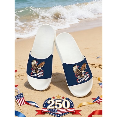 Dámské šedé vlastenecké nazouvací sandály – lehké plážové pantofle s grafikou orla a americké vlajky na dovolenou, k bazénu, do letoviska i na letní volnočasové nošení