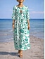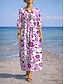 Dámské Maxi šaty Úpletové šaty prázdniny Na běžné nošení Plážový styl Plážové Jdeme ven Volný Květinový Grafika 3/4 délka rukávu Výstřih ke krku Vodní modrá Rubínově červená Fialová Trávová zelená