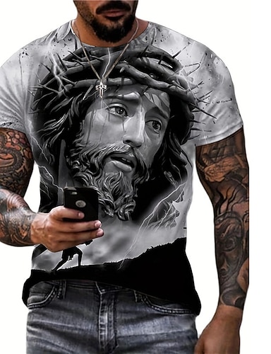 Tričko s krátkým rukávem Men’s Bible Graphic Jesus T-shirt 3D print s crew krkem každodenní designer retro vintage sporty venkovní dovolená růžová nebe modrá khaki jaro a léto