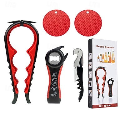 otvírák na sklenice pro slabé ruce, seniory s artritidou, 5v1 multifunkční otvírák na lahve a víko pro artritické ruce s protiskluzovou gumovou úchopnou podložkou otvíráku na sklenice