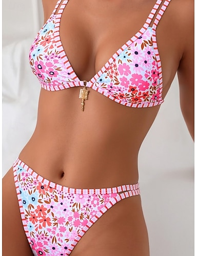 Dámské bikiny 2-dílné plavky sexy úzké bez ramínek dovolená plážové oblečení květinový V výstřih bez rukávů