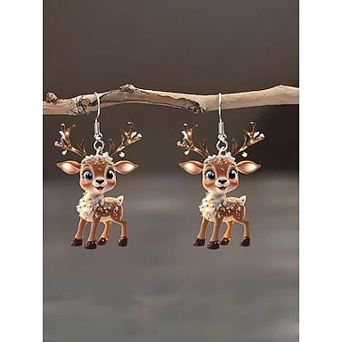 Dámské vánoční dárkové akrylové náušnice se sobami, roztomilý sváteční design se santovou čepicí, zábavný sváteční doplněk na večírky a setkání.