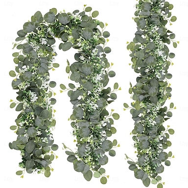 umělá eukalyptová girlanda, umělé závěsné eukalyptové liány, listy zeleně, prémiová odolnost proti oxidaci umělá květina, dekorace na zeď, dekorace na zahradu, potřeby na zahradu, dekorace na párty,