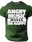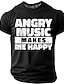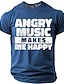 Vtipné naštvané hudba mě dělá šťastným pánské černé tričko heavy metal rock punk grafické tričko milovník hudby humor top oblečení oblečení velikosti S M L XL XXL XXXL