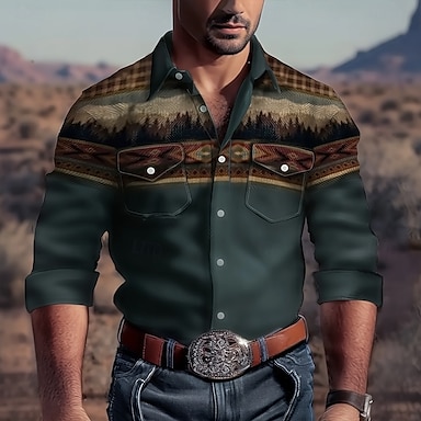 Pánské Příroda a krajina Hora Westernová košile Košile na knoflíky Kovbojská košile Dlouhý rukáv Západní Vintage Retro Venkovní Outdoor a turistika Jaro Podzim Přehnutý košile s límečkem Přední dv
